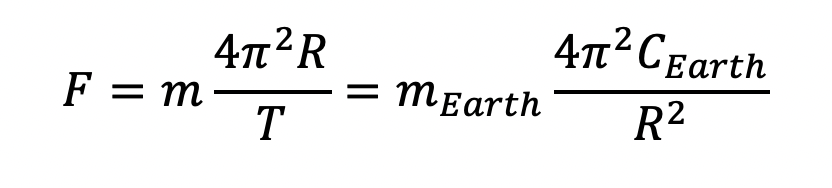 is a constant that we call CEarth, so inserting this constant as well as an additional R2 term in the denominator to compensate for the additional R2 term we insert in the numerator, we now obtain: