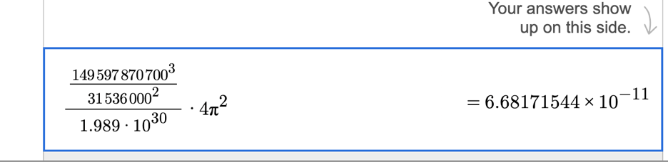 Using some of the known values for the radius between the sun and Earth, period of orbit, and mass of the sun,we get a very close approximation to the value for G that is currently accepted.