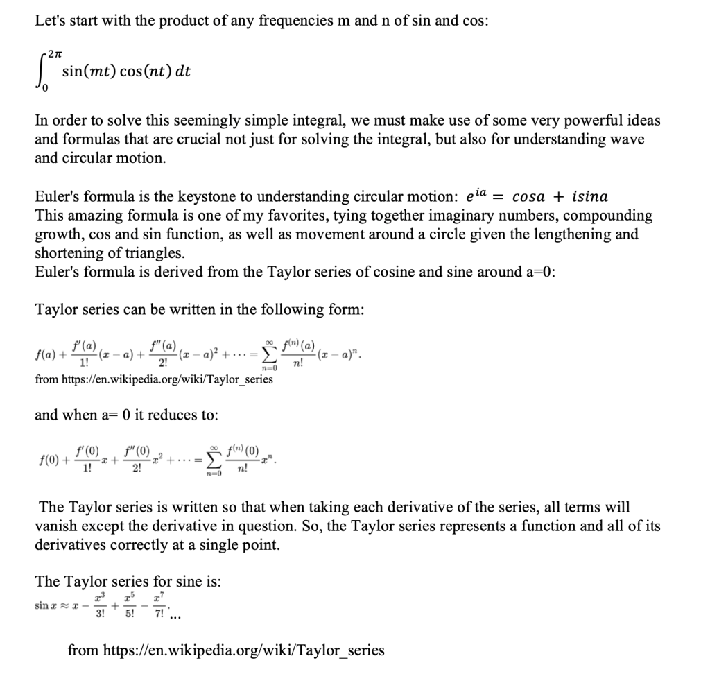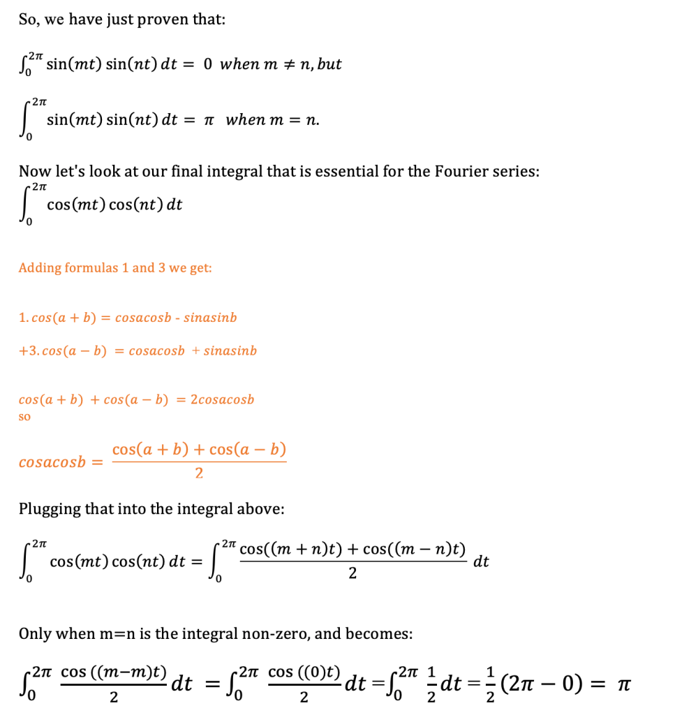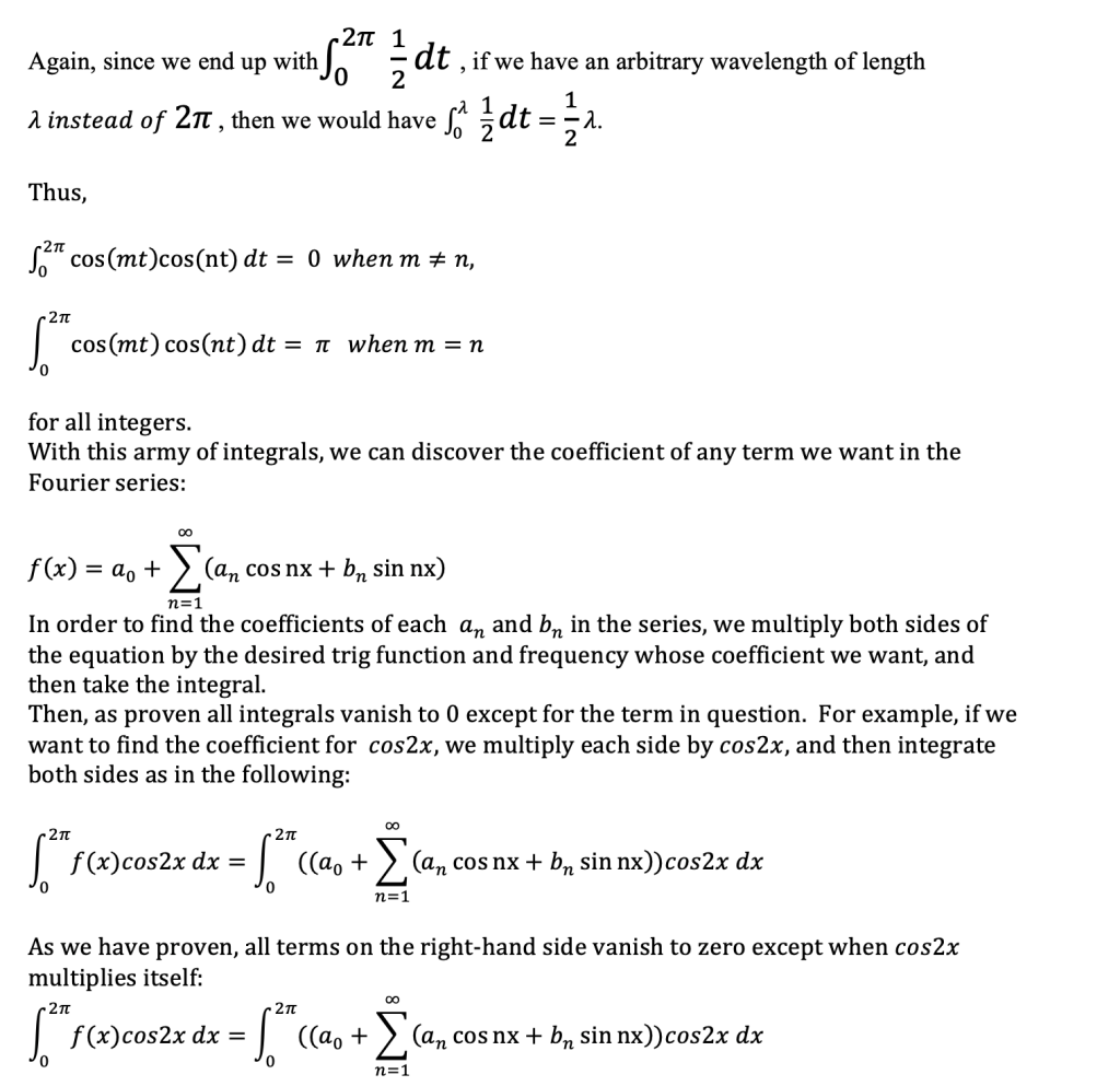 (Note: in the above the imaginary number i was dropped from multiplying the Dn coefficient. This can be done by constructing the original Cn and Dn coefficients as complex conjugates for which the i term would drop out after converting to sine and cosine, and you would obtain the purely real solution as shown above. The reason we know we can do this is because another solution of the original equation Y” + CY=0 is just in terms of sin + cos , without any imaginary numbers multiplying it.).