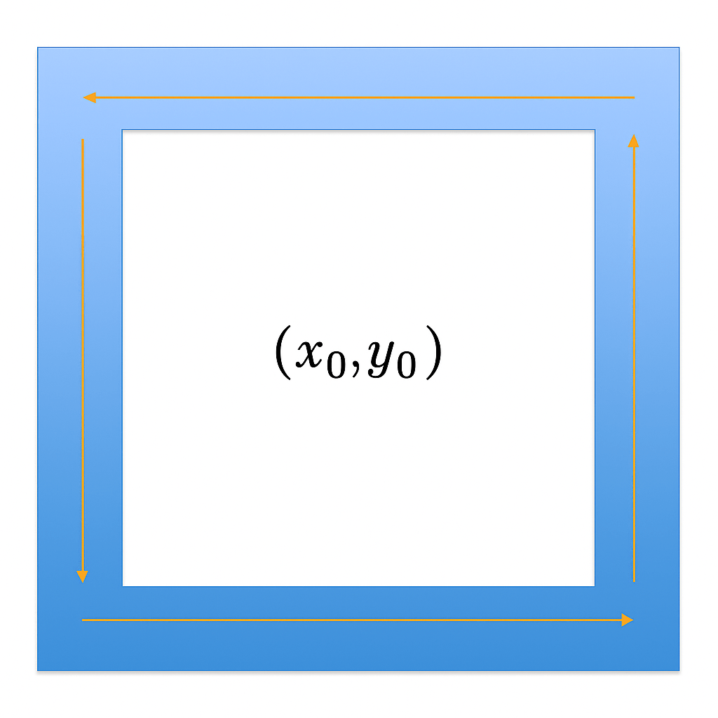 to ensure all higher derivative terms go to 0. Then we end up with a perfect scalar measurement of the rotation present in the top and bottom edges of our square, which is shrunken to a point itself: